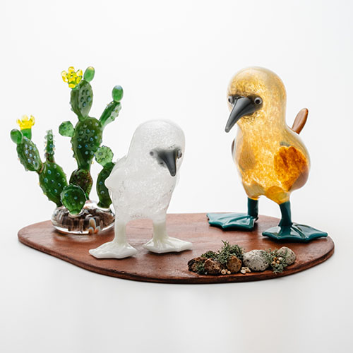 清藤智子「アオアシカツオドリとガラパゴスウチワサボテン」