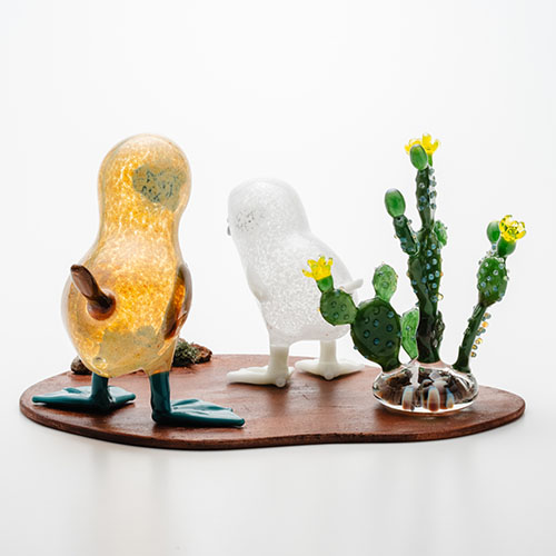 oba:oba 清藤智子 硝子細工(木の土台付き)