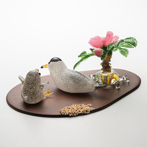 oba:oba 清藤智子 硝子細工(木の土台付き)