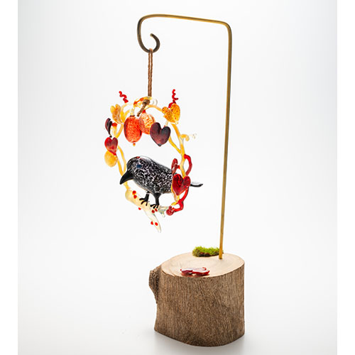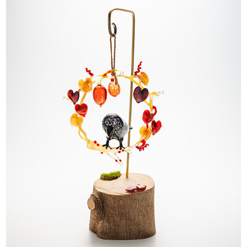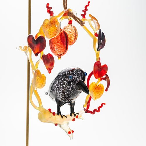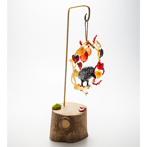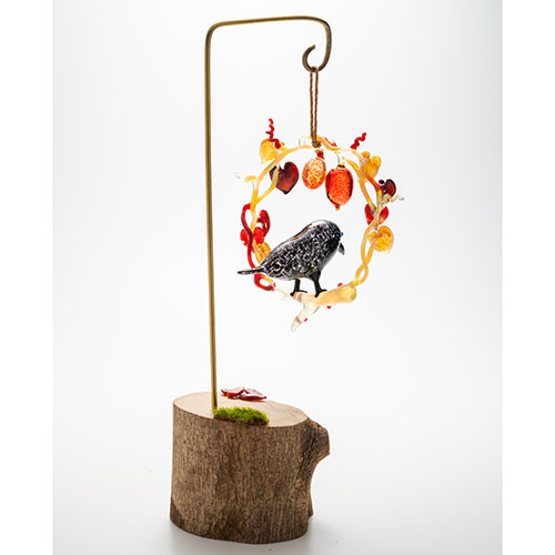清藤智子「カラスとカラスウリのリース」